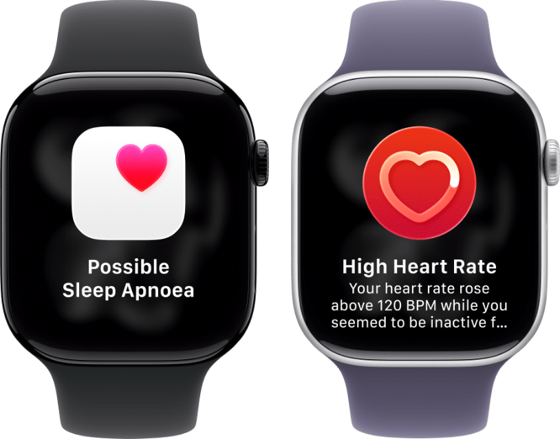 Sleep Apnoea Notifications: Sleep apnoea notifications are available on Apple Watch Series 9 and later, Ultra 2 and later, and SE 3. The feature is intended to detect signs of moderate to severe sleep apnoea for people 18 years old or older without a diagnosis of sleep apnoea.