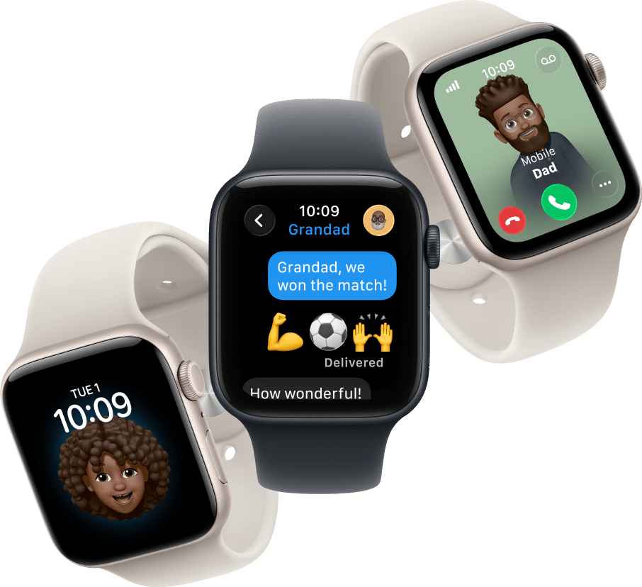 Apple Watch For Your Kids: Not all features will be available if the Apple Watch is set up through Apple Watch For Your Kids. Check support.apple.com/en-gb/109036 for details. Wireless service plan required for cellular service. Check apple.com/uk/watch/cellular for participating network providers and eligibility.