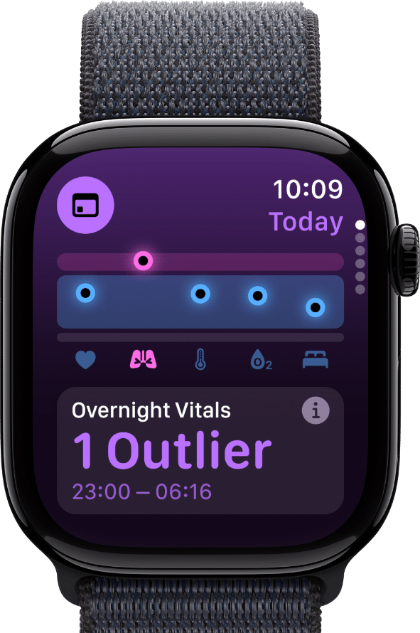 View key overnight health metrics at a glance with the Vitals app.◊
